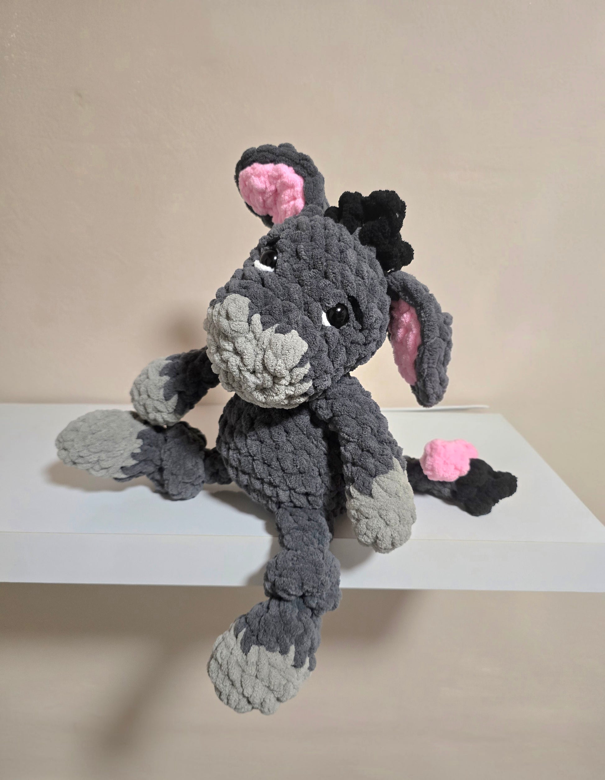 This Soft Eeyore Plushie is a beautifully handmade plush toy designed to provide comfort, reassurance and cuddles. Crafted using luxuriously soft plush yarn, this bear comforter is gentle on delicate skin and easy for small hands to grip.