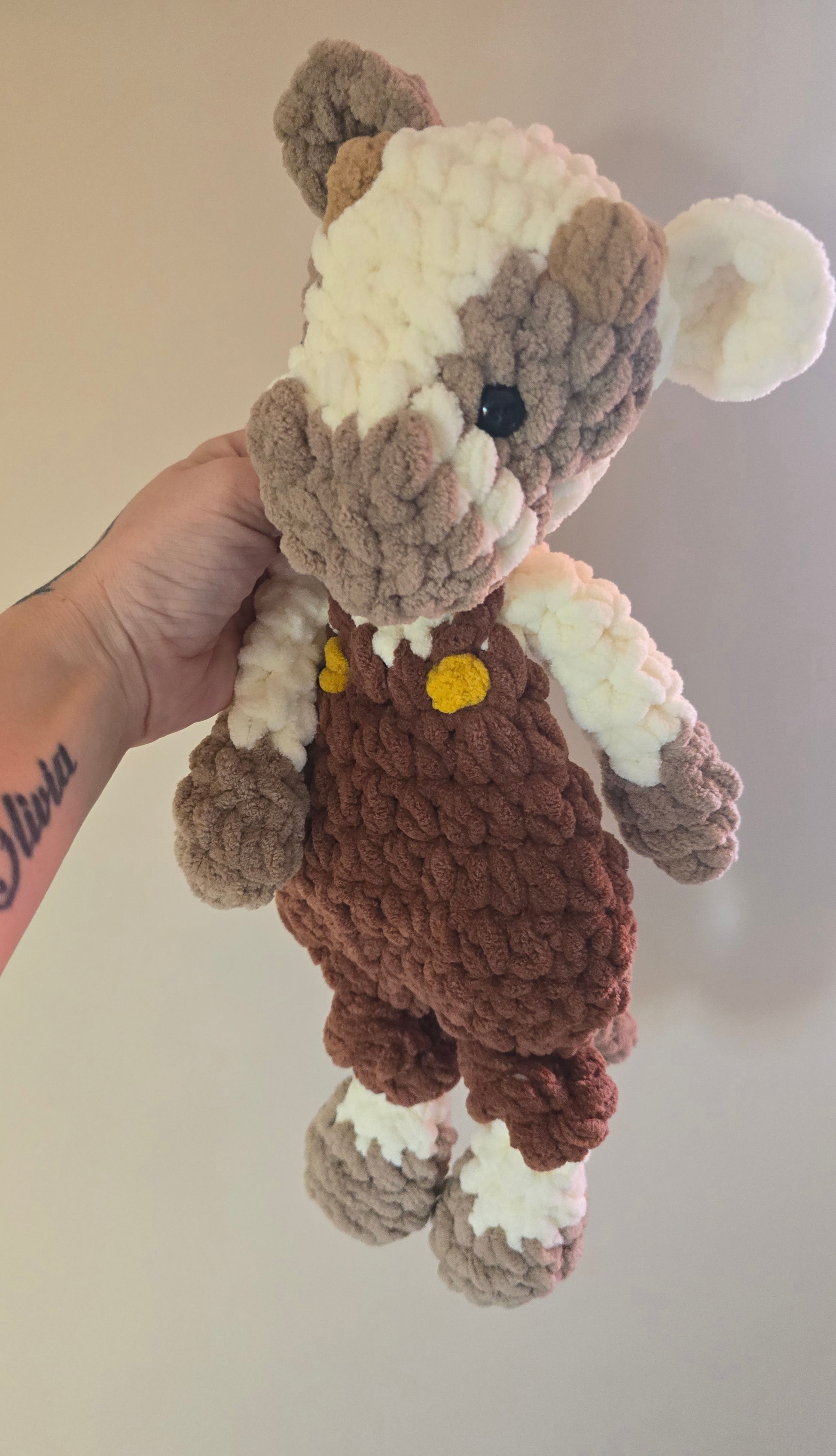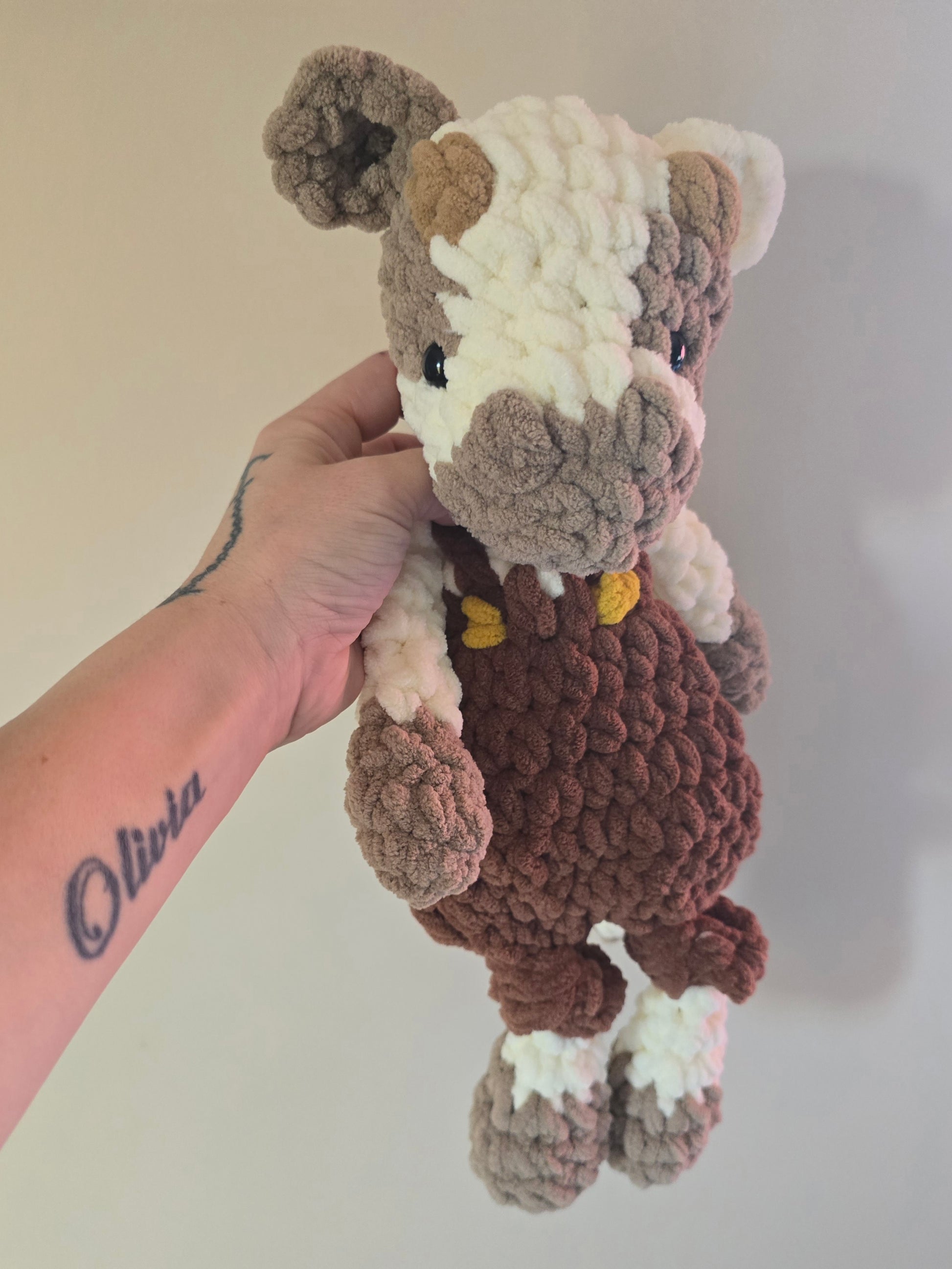 Made with acrylic yarn, plastic safety eyes, and filled with 100% hypoallergenic poly fill stuffing!