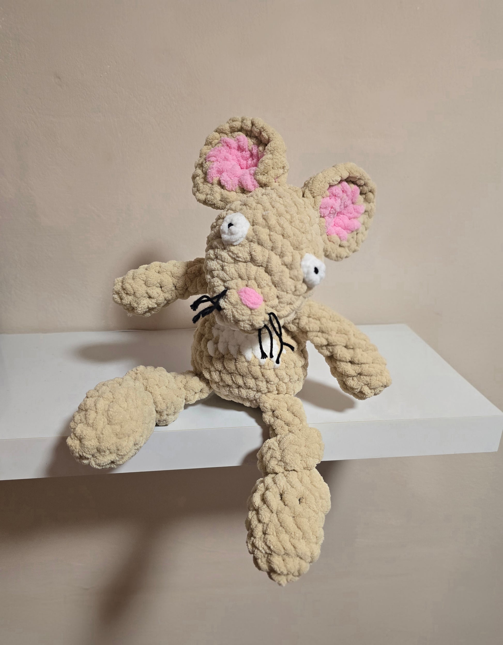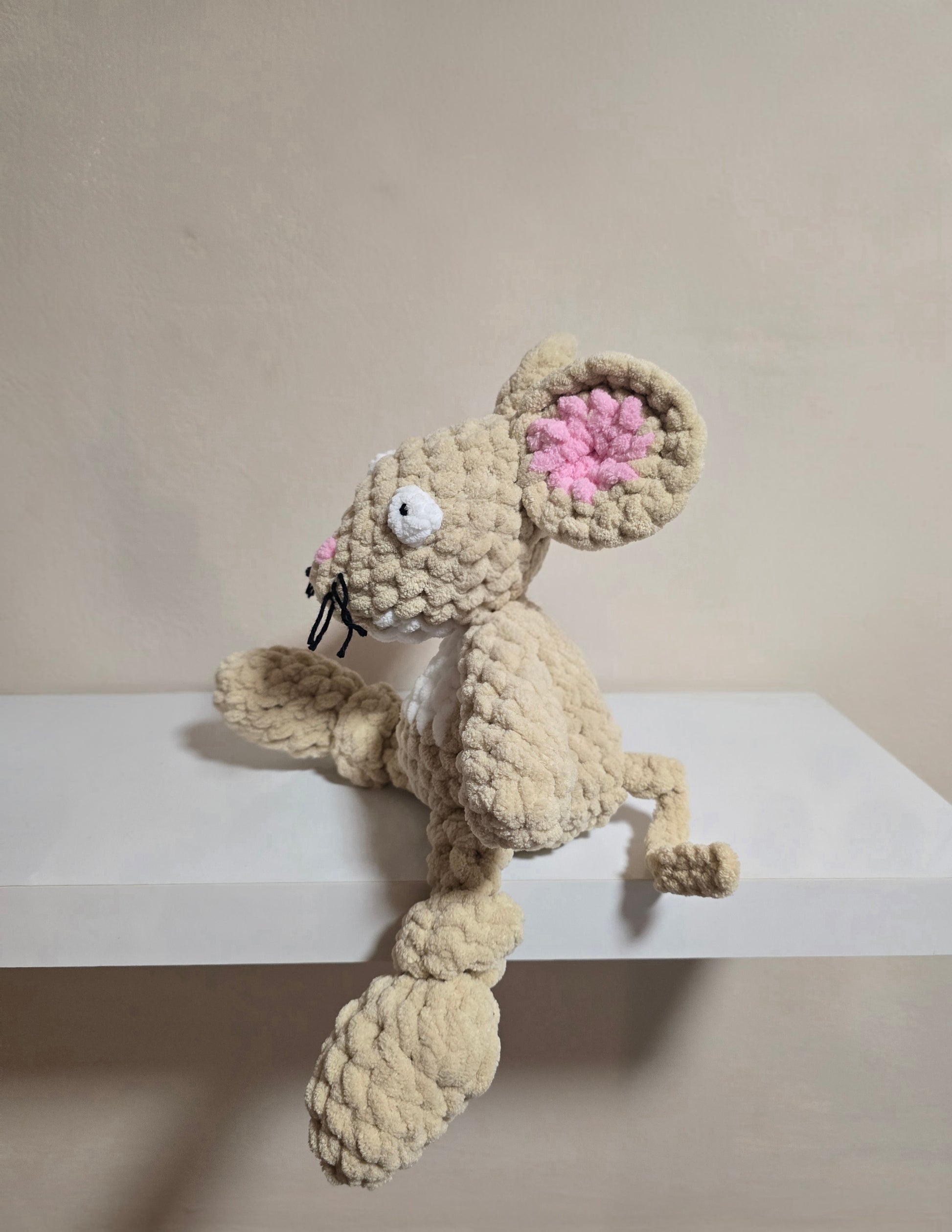 This Soft Gruffalo Mouse Plushie is a beautifully handmade plush toy designed to provide comfort, reassurance and cuddles. Crafted using luxuriously soft plush yarn, this bear comforter is gentle on delicate skin and easy for small hands to grip.